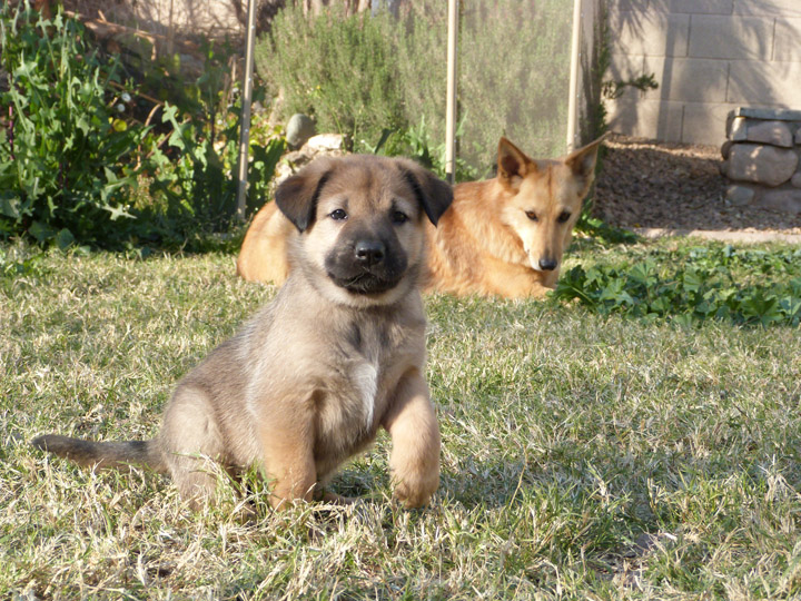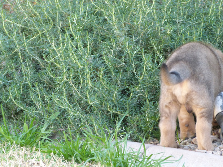 He prances around the backyard and always puts a paw forward before tackling a puppy or playing with a toy. I got him interested in my finger the other day as I was trying to catch this cute "paw" thing on camera. There is a really cute video clip of him waving his paw at me in this week's videos you have to check out! I think he'll learn the "wave" and "shake" commands pretty quickly. It's pretty darn cute.