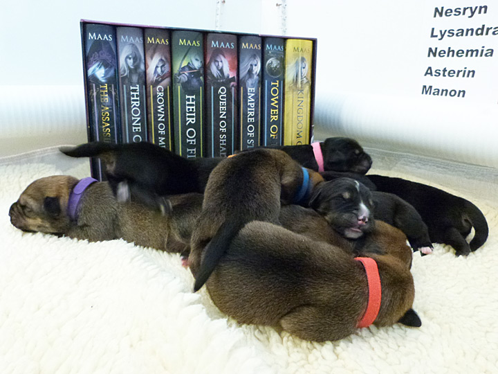 So now, the moment you've all been waiting for, we would like to introduce the puppies of the Throne of Glass litter, in order of appearance:
